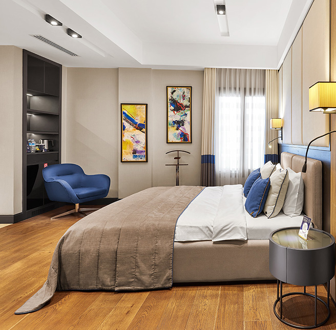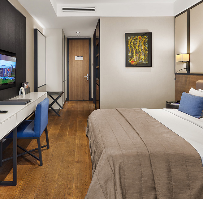 Konfor ve şıklığın birleştiği Deluxe Odalar, iş seyahatleriniz için unutulmaz bir deneyim sunuyor.