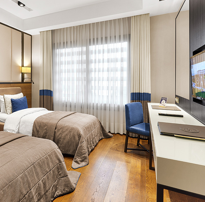Konfor ve şıklığın birleştiği Deluxe Twin Odalar, iş seyahatleriniz için unutulmaz bir deneyim sunuyor.